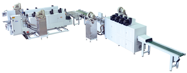 The dual end vacuum spraying production line can evenly spray the floor grooves. For the double ended spraying work of straight lines. The entire spraying process of this production line is completed inside the vacuum box, achieving 99% recycling of the coating.