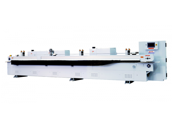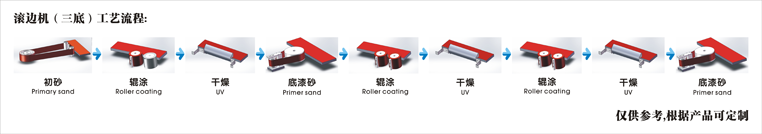 采用輥輪結(jié)構(gòu)完成材料側(cè)邊毛料的砂光、涂布及干燥,實現(xiàn)從毛料到面漆的一體化加工,顯著減少打磨噴漆工序。適用于木器、塑料、金屬、建筑新材料等多種材料,處理后表面光滑、漆膜飽滿且無色差。