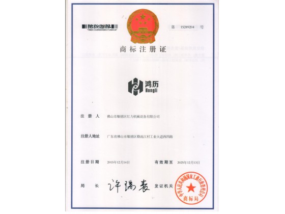 鴻歷商標(biāo)證書(shū)